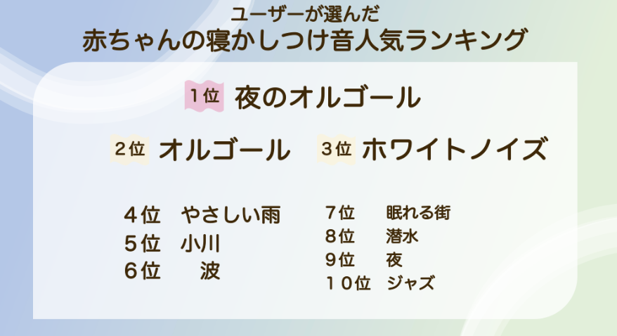 初公開!『ぐっすリンベビーユーザーが選んだ!寝かしつけ音人気ランキング』