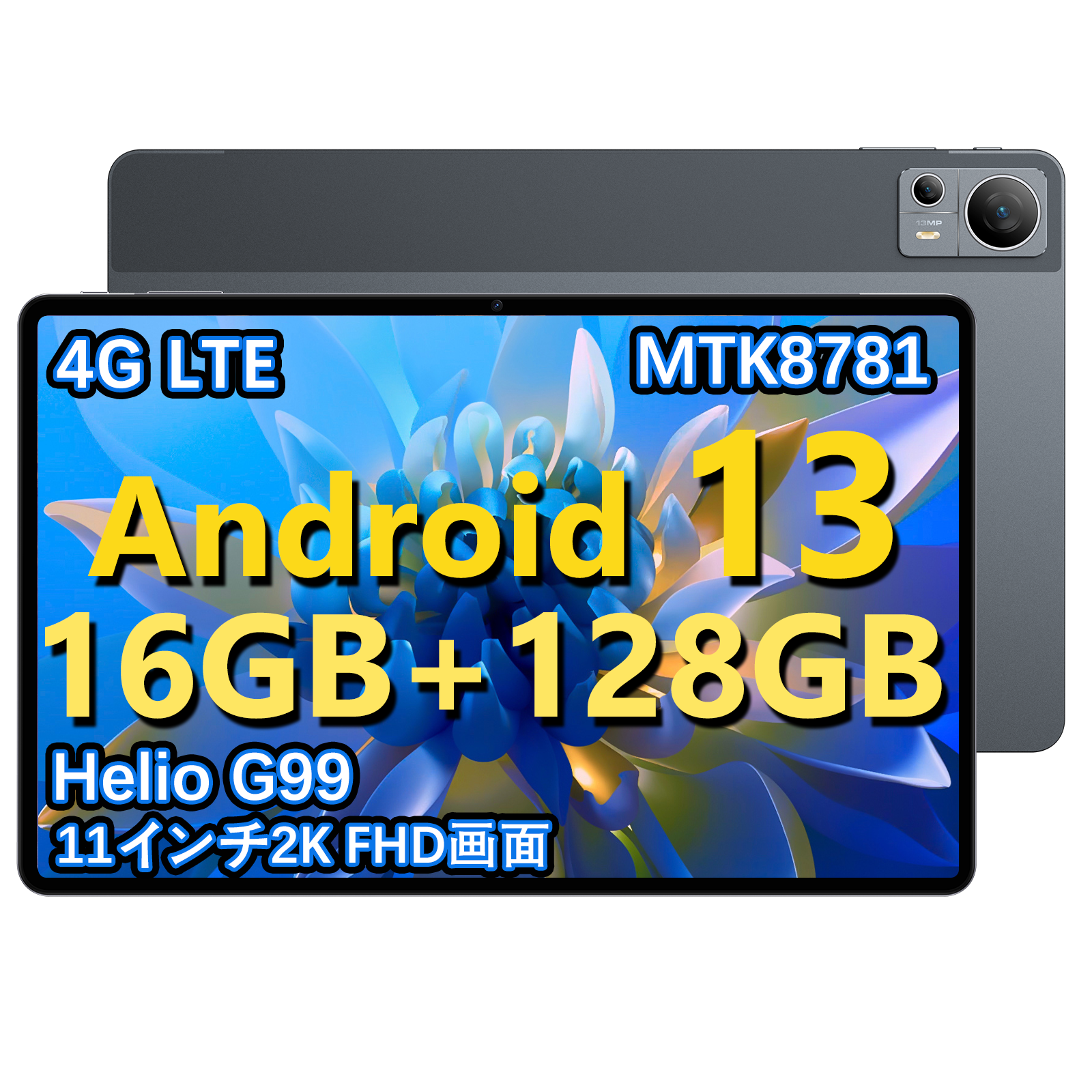 MediaTek Helio G99、6 nm で製造されたオクタコア。 2.2 GHz に達する 2 つの ARM Cortex-A76 プロセッサ + 最大 2.0 GHz に達する 6 つの ARM Cortex-A55 を搭載したチップ。消費電力が低くなり、タブレットPCのパフォーマンスが大幅に向上します。 ANTUTUスコアは370,000 以上と高く。