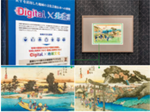 ICTを活用し地域の文化芸術伝承のため、20億画素の高画質でデジタル化を図った葛飾北斎作の「冨嶽三十六景」や、歌川広重の「東海道五十三次」をご覧いただけます。