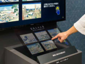 空中映像により、絵画が浮き上がるような視覚体験を提供しており、非接触で選択・拡大して細部まで楽しめる高精細デジタル絵画鑑賞体験ができます。(葛飾北斎作の冨嶽三十六景)