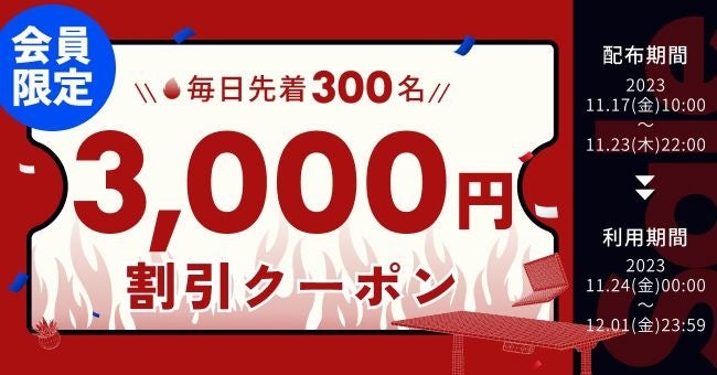 条件 :毎日先着300名様に3,000円割引クーポンを配布