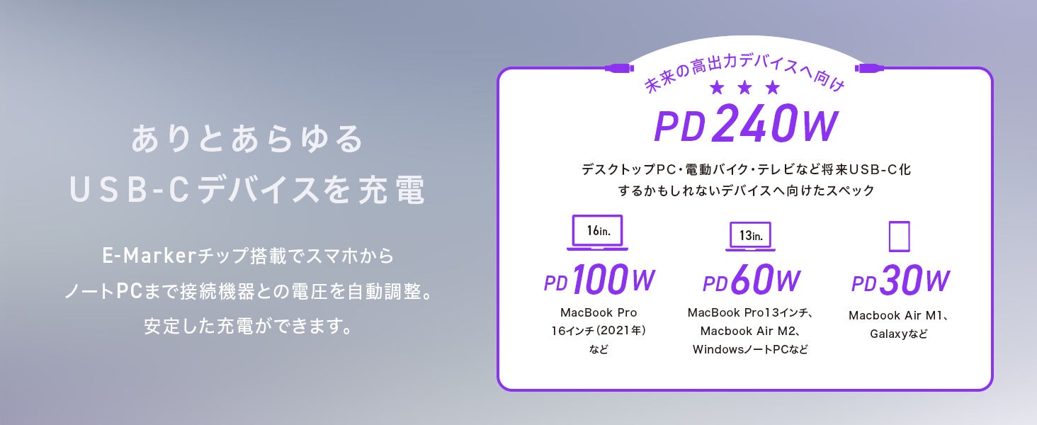 ケーブルをカスタマイズできる「延長ケーブル240W」