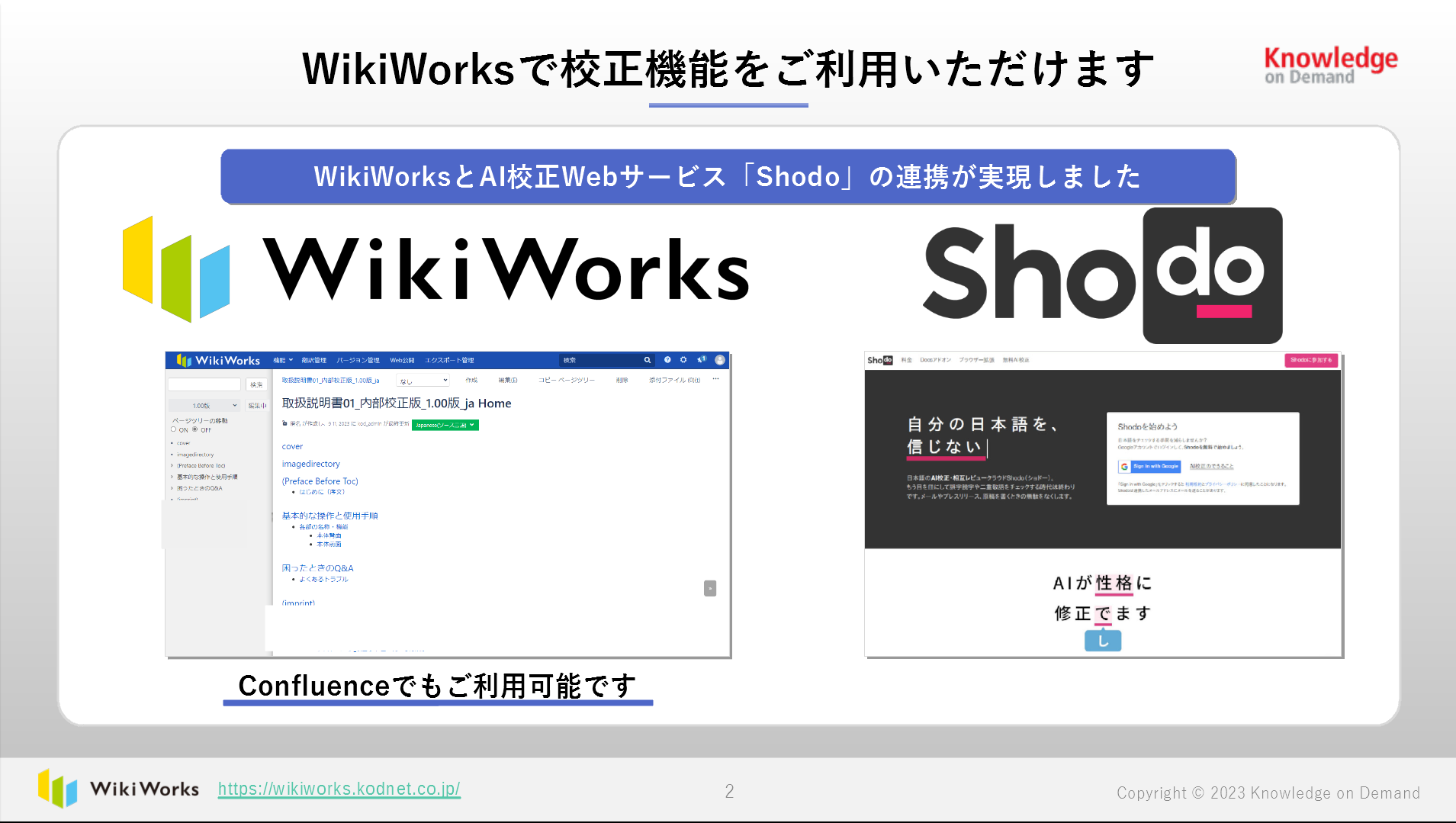 Shodo(ショドー)は「自分の日本語を、信じない」を掲げ、AIによる文章の校正や誤字脱字のチェックを提供するクラウドサービスです。今回、ナレッジオンデマンド株式会社の提供するマニュアル制作プラットフォーム「WikiWorks」の最新バージョン「WikiWorks 3」に日本語校正機能を提供すると発表しました。