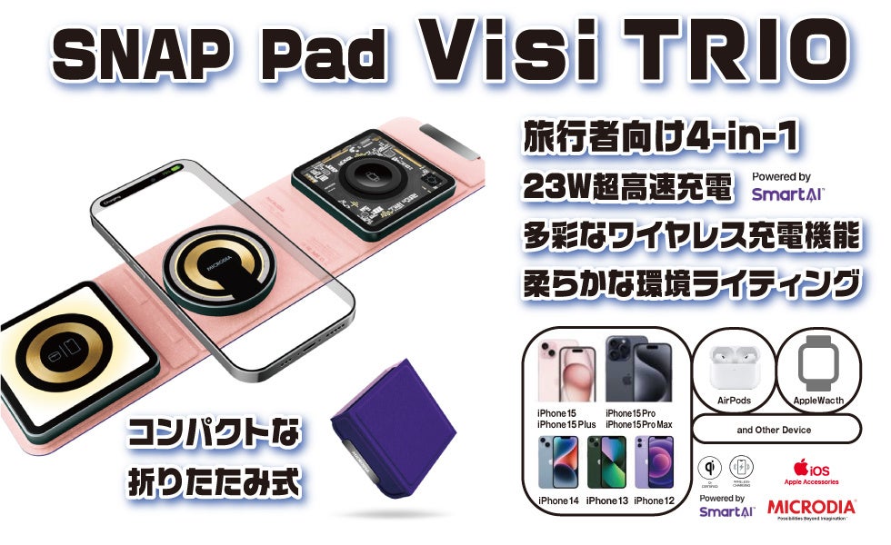 SNAPPAD Visi.Oは15Wのワイヤレス充電パッド。SNAPPAD Visi.TRIOは23Wの4-in-1ワイヤレス充電パッド。速くて洗練されたデザインが魅力です。