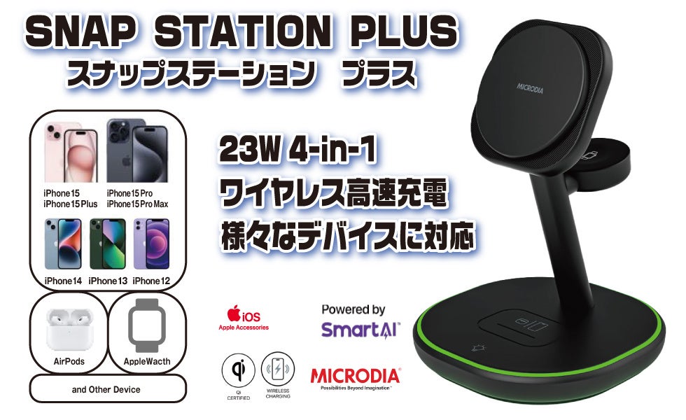 SNAPSTATION Plusは23Wの4-in-1ワイヤレス充電ステーション。Ambient Lighting機能でスタイリッシュな充電。SNAPSTATION Aluminaireは透明なハウジングが特長です。