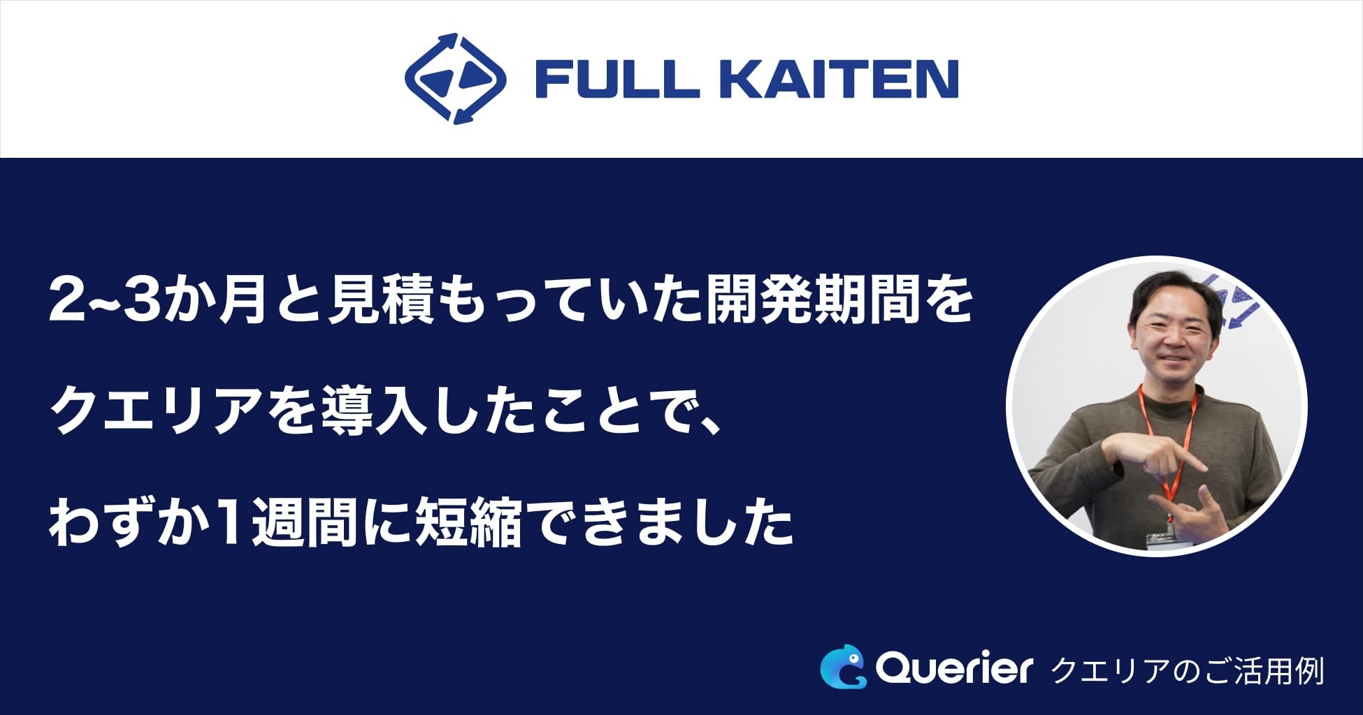 株式会社クエリアは、フルカイテン株式会社(代表取締役: 瀬川直寛)に対し、管理画面開発のためのツールとして社内向け管理画面開発ローコード「クエリア」の提供を開始しました。
