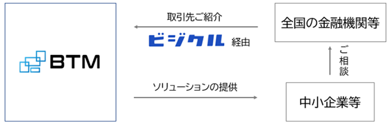 この度、「ビジクル」にBTMのサービスを掲載することでより多くの地方企業等へのアプローチが可能となり、知名度の向上や売り上げの拡大に繋がることを期待しています。