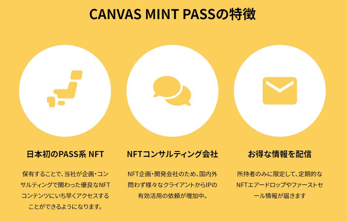 NFTの企画・コンサルティングを行うCANVASでは、多くのNFTのリリースに関与する事が想定できるため、投資家にとってはリスクヘッジの効いているNFTであると言えます。