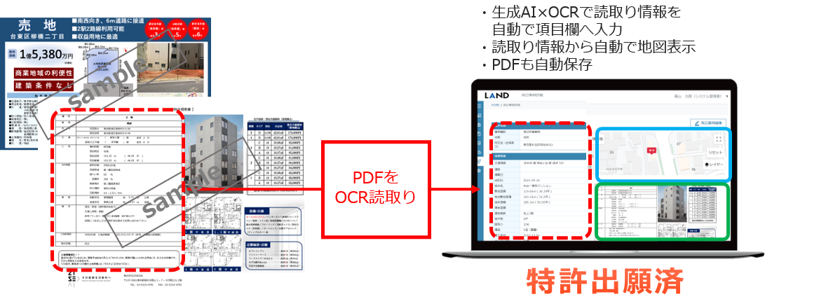 今回の新機能について、一番のポイントは生成AIとOCRの合わせ技により、どんなフォーマットでも読取りを可能にしたところです。従来、OCRは統一フォーマットでなければ読取りが難しく、不動産企業各社がそれぞれ作成する物件概要書やマイソク(販売用資料)は独自に作成されたものでありフォーマット統一の実現は不可能でした。
