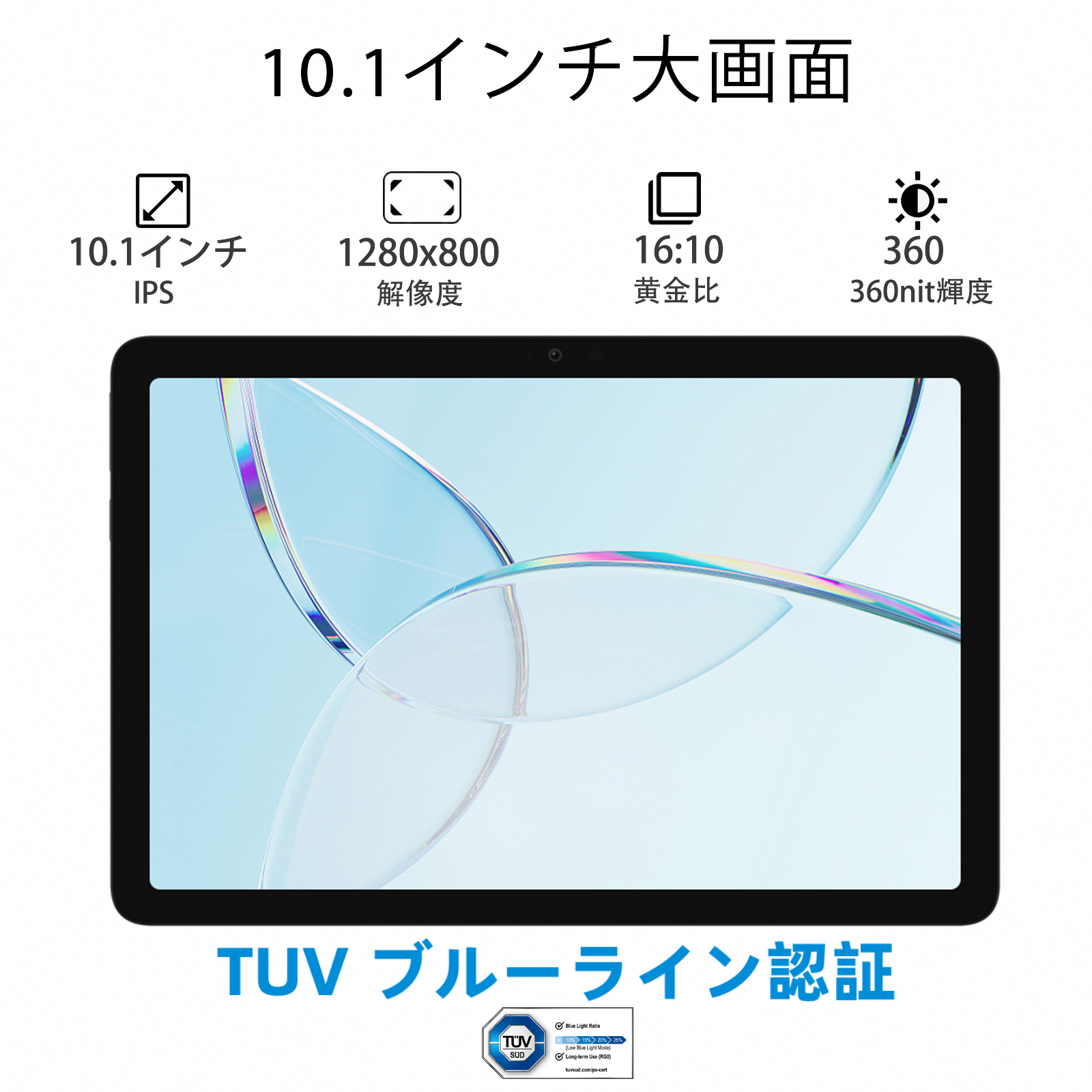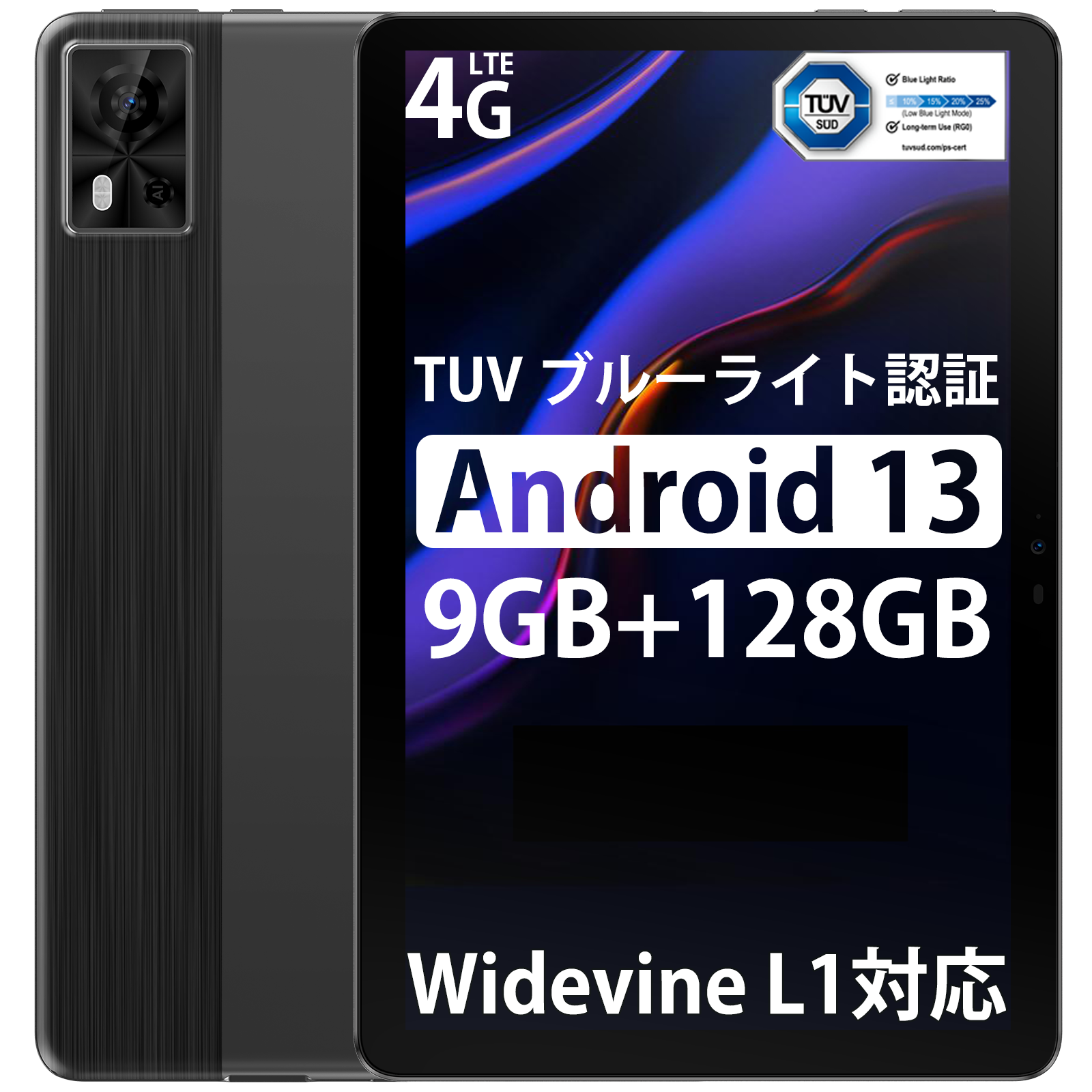 UNISOC 8コアCPU、9GB (4+5拡張) +128GB、1280*800 IPS HD 画面、6580mAhバッテリー、SIMフリー タブレット 4G LTE、8MP/5MPカメラ、Widevine L1対応+TUV ブルーライト認証