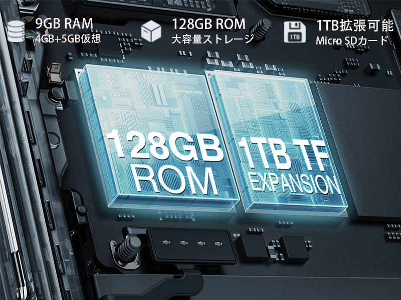 DOOGEE T10E タブレット 端末は、最大5GBのメモリ+最大5GBの拡張可能な仮想メモリ、合計9GBの融合メモリを搭載しています。これにより、タブレットは複数のアプリケーションを簡単かつスムーズに切り替えることができ、ラグをなくし、高速でスムーズな操作体験を提供します。128GBの大容量ストレージも搭載されているため、メモリ不足を心配する必要はもうありません。 大容量の1TBまでのmicroSDカードでストレージ容量をさらに拡張できます。(FAT32、exFATフォーマットカードは別売り)
