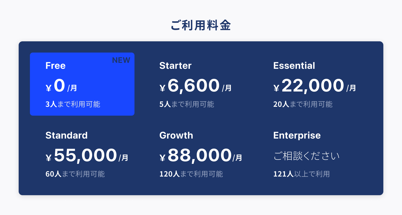 従来はチームプランを1ヶ月間無料でお試しいただけるトライアルを提供しておりましたが、Freeプランの提供開始に伴ってトライアル制度は終了致します。大人数でのご利用検証をしたい場合はお問い合わせください。