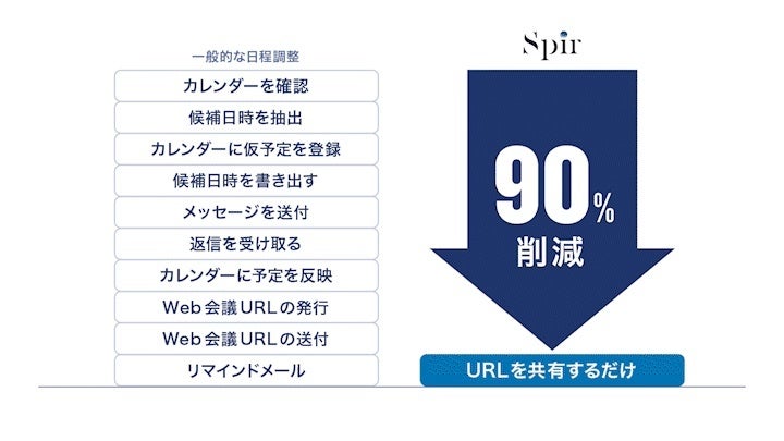 株式会社Spirは「相手も、自分も、思いどおりの調整を。」を実現する、予定管理から日程調整まで戦略的にタイムマネジメントできる日程調整ツール「Spir」を開発・運営しています。複数のカレンダーアカウントと連携し、日程調整からWeb会議URLの発行やカレンダーへの登録まで、親しみやすいUI/UXでストレスなく操作いただくことが可能です。