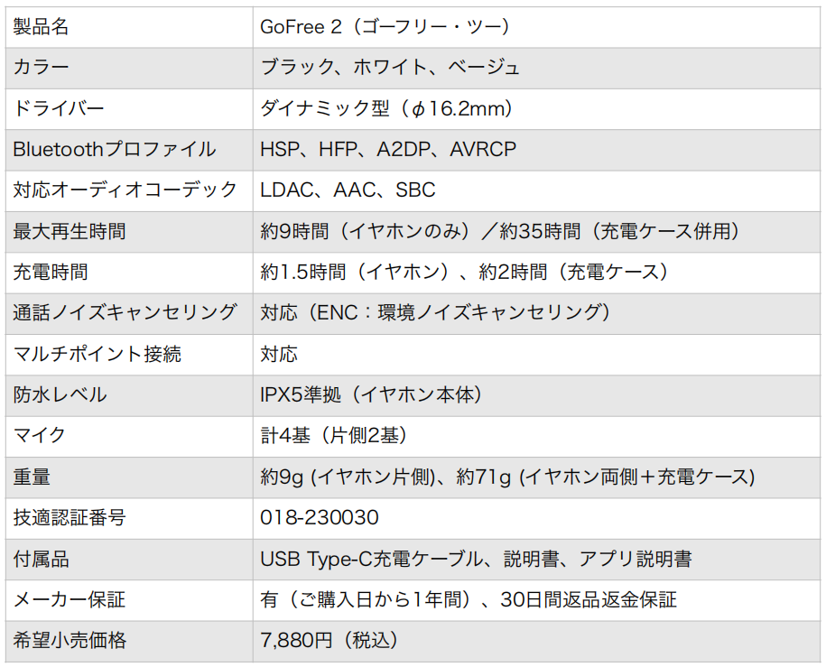 公式ページ:https://jp.soundpeats.com/products/gofree2