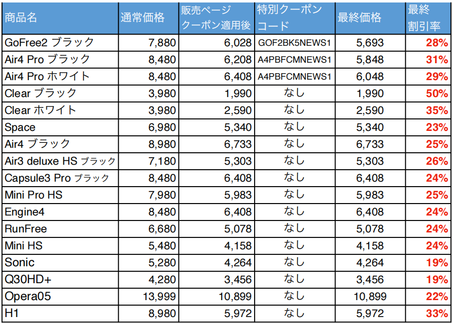 Air4 Proブラック&ホワイト専用割引クーポン:A4PBFCMNEWS1