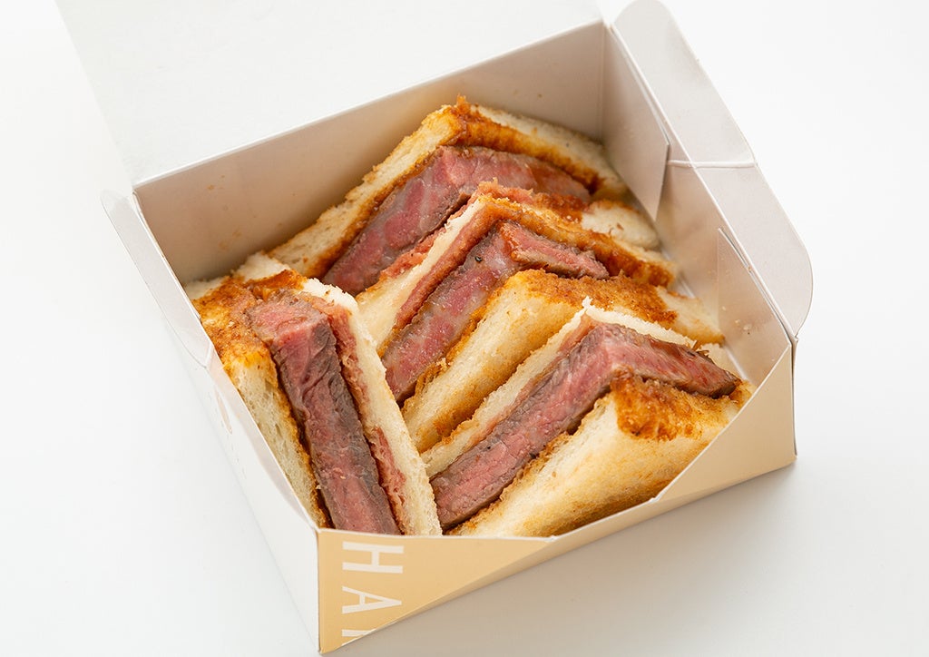 キメが細かく甘みやジューシーな霜降りが多いサーロインを、食べやすいサンドイッチにしました。メニューブックに載っていない特別なはり重のステーキサンドは、大切な方への差し入れとしても活躍します
