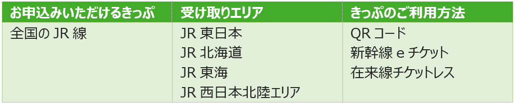 ビジネスえきねっとでは、全国のJR線の申込が可能です。お申込みいただいたきっぷは、当社指定のエリアにて、QRコードにて受取りいただく他、JR東日本の新幹線・特急列車(一部)につきましては、チケットレスでのご乗車も可能です。