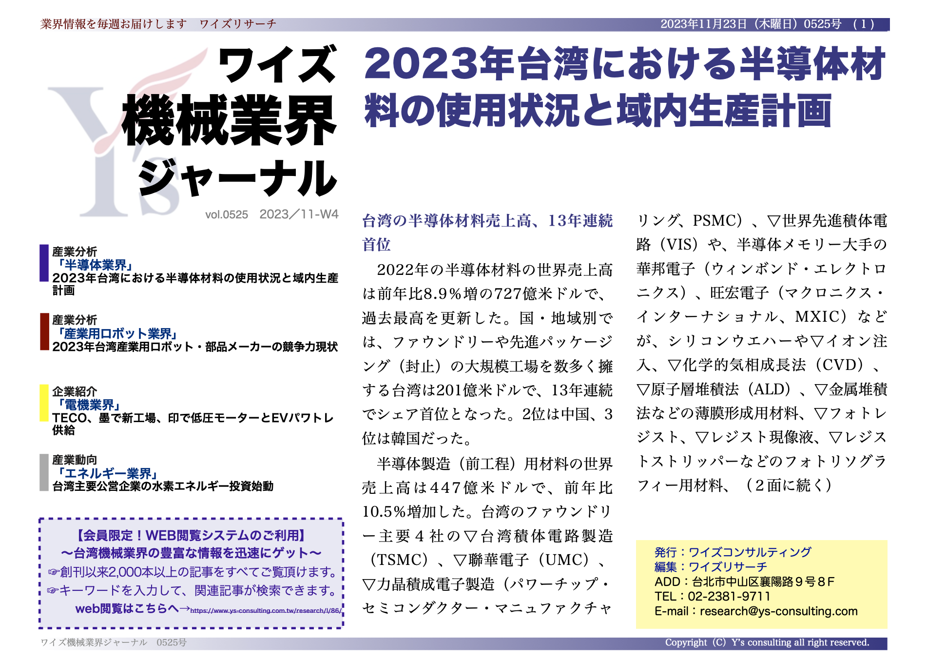 2023年台湾における半導体材料の使用状況と域内生産計画