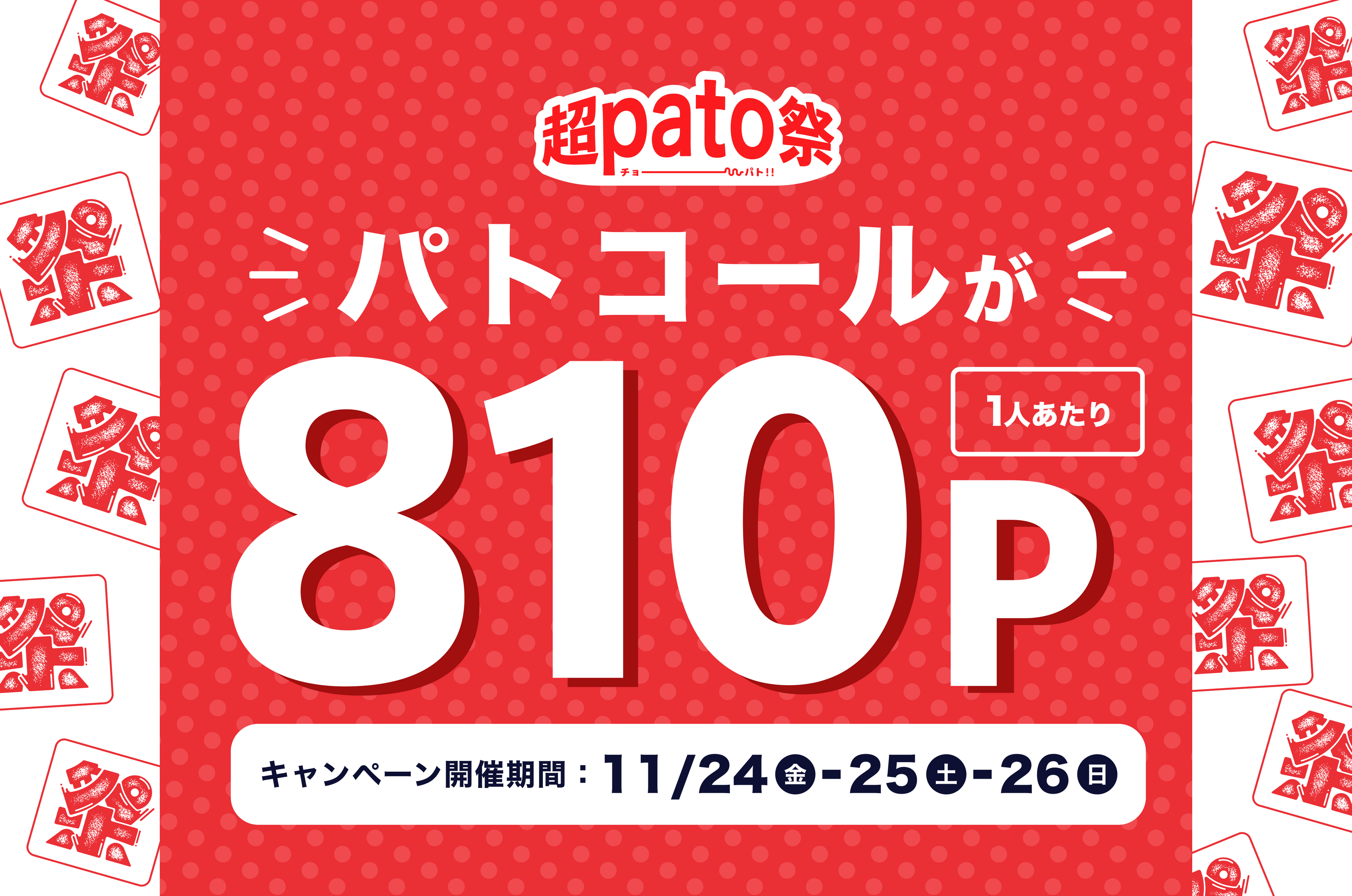 patoでは、ブラックフライデー期間中にpatoコールをご利用いただくと、1名あたり【1時間810P】で合流できる還元キャンペーンを開催いたします。