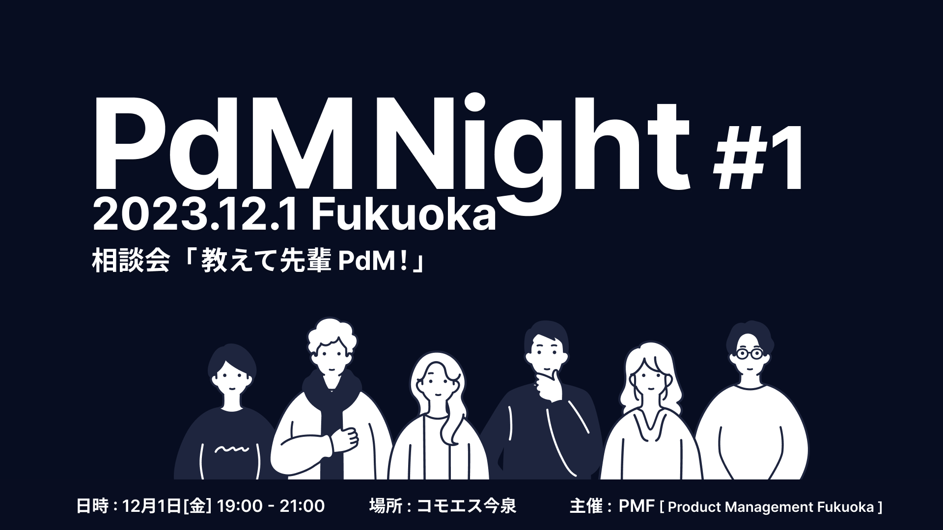 そこで、「PdM Night」では、参加者同士のディスカッション、経験や事例の共有、課題や悩みの共有・相談を通じて、会社や団体の枠を超えてPdMの問題解決の場を提供します。これにより、福岡のプロダクトマネジメントスキルの向上と発展を促進することを目指しています。