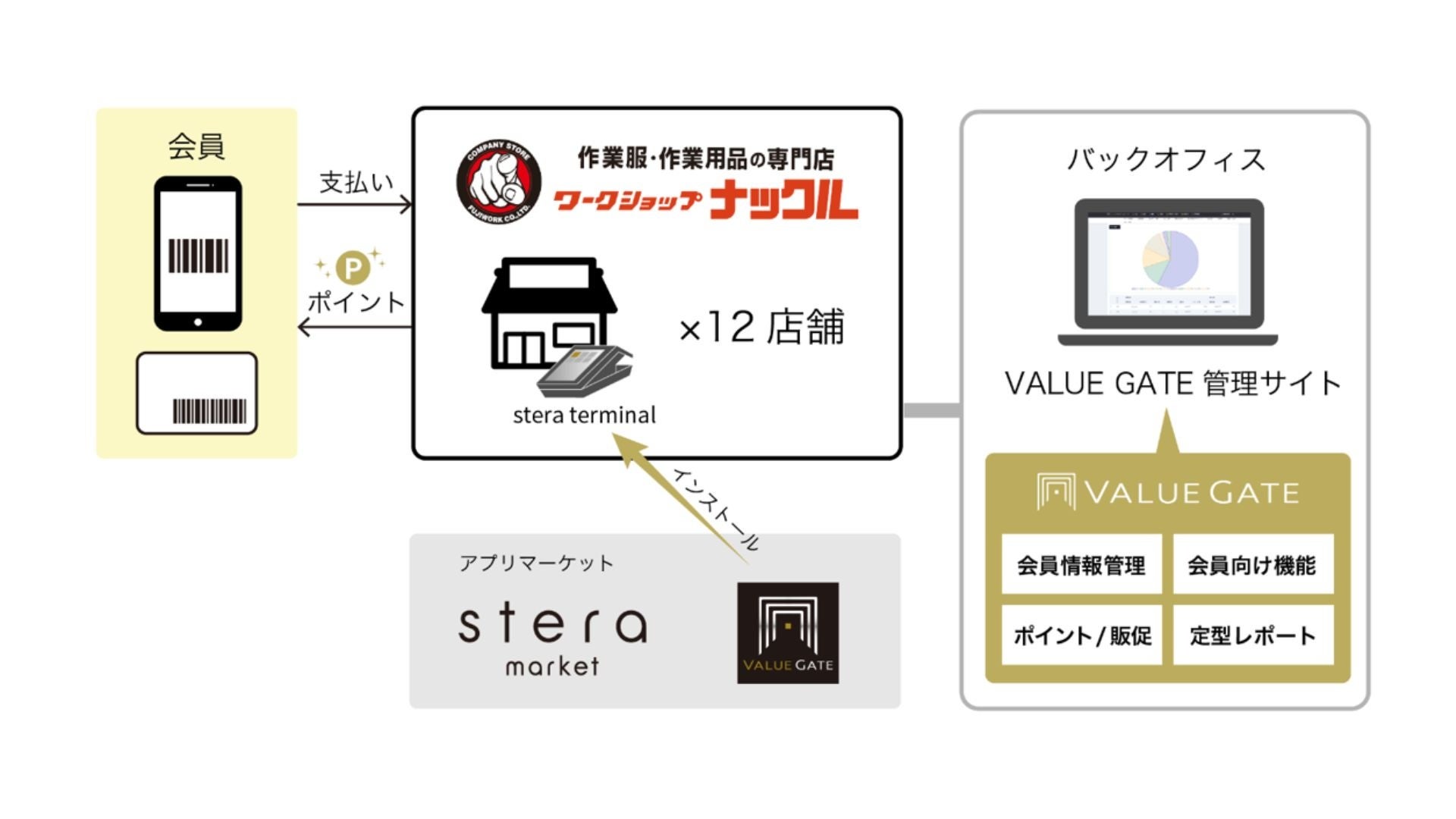 三井住友カード社が提供している、オールインワン決済端末「stera terminal」を全店舗に導入していたため、端末をそのままポイント端末としても活用できることに魅力を感じていただきました。stera marketというアプリマーケット上から端末にポイントアプリをインストールするだけで簡単に利用開始できます。