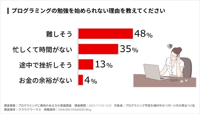 [2]プログラミング学習を始められない理由は「難しそうだから」が48%