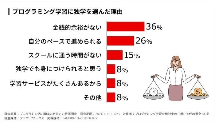 [7]プログラミング学習に独学を選んだ理由1位は「金銭的に余裕がない」から