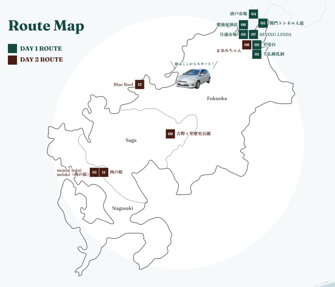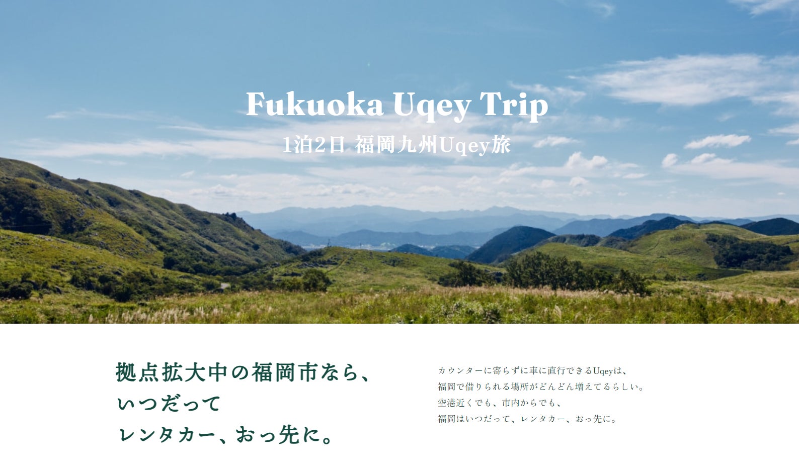 株式会社東海理化の無人レンタカーアプリ「Uqey(ユーキー)」は、福岡の旅行プランを紹介するための新しいコンテンツを公開しました。本コンテンツでは、福岡県で拠点拡大中のUqeyを使ったレンタカー旅として、特別な景色や体験をプランに取り入れた「1泊2日 福岡九州Uqey旅」をお届けします。レンタカーを利用した1泊2日の旅行プランをルートマップとともにお伝えします。