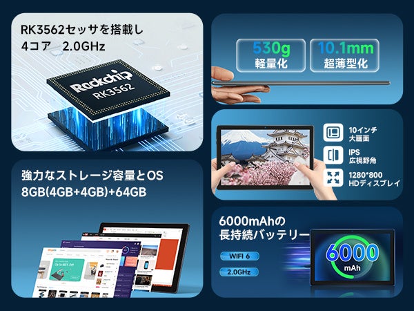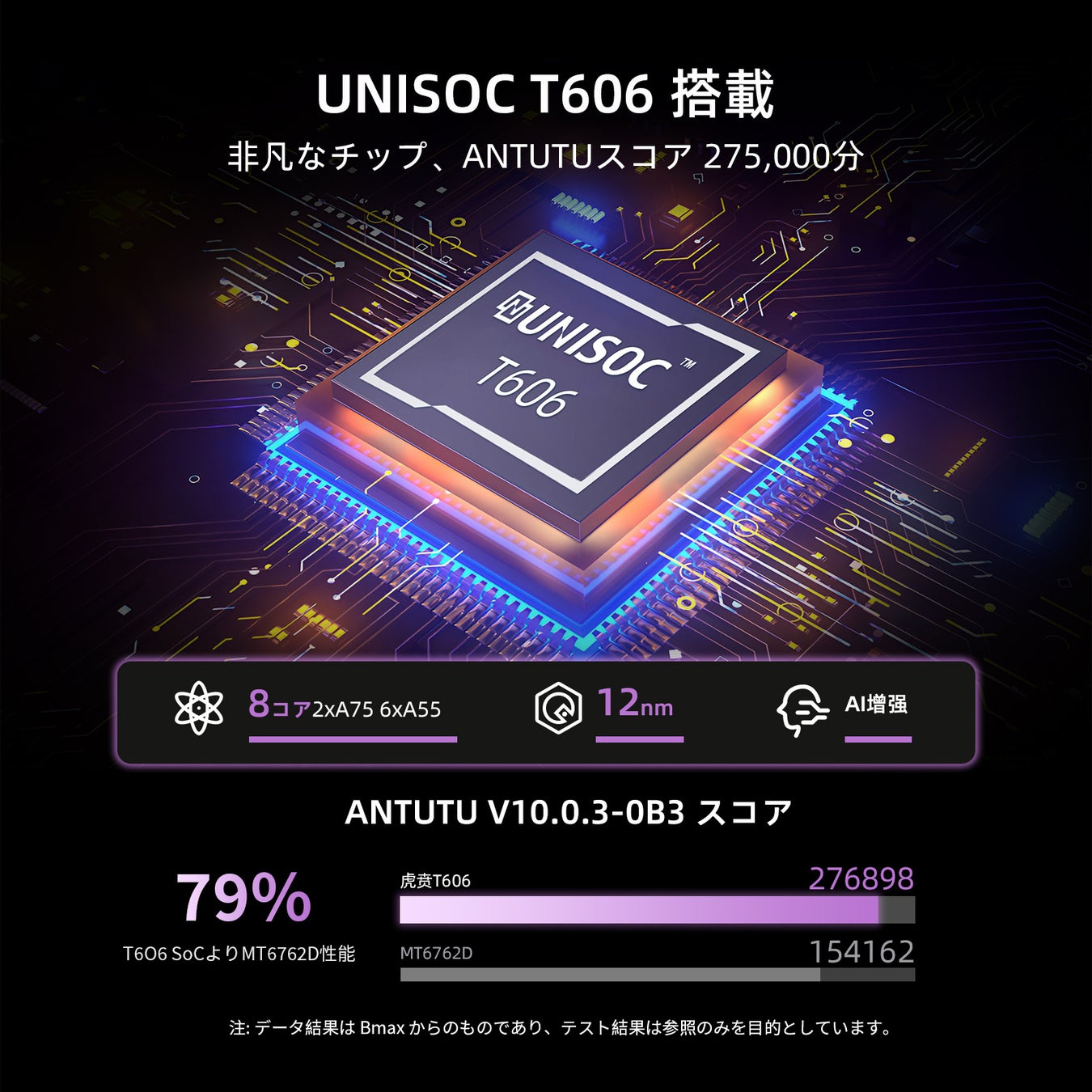I10Pro タブレットのCPUは4コアから8コアまでにアップグレードしております。2つ高性能の大型コアA75と6つ高効率のA55のT606CPUを搭載し、低消費電力の12nmプロセスで、低消費電力と低発熱を実現でき、様々な機能が強化されており、従来より軽快な動作と高速な処理が可能になっております。MaxPad I10Pro タブレットのAnTuTu実行ポイントも250,000を超えます。