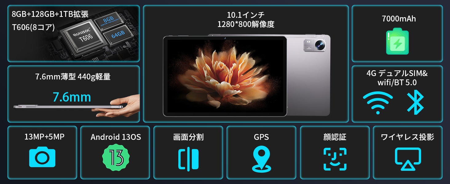Amazon.co.jp: Bmax i10pro Android 13 タブレット、Widevine L1対応、8コアCPU T606、800*1280解像度 FHD IPSスクリーン、8GB+128GB+2TB拡張可能、7000mAhバッテリー、5MP/13MP カメラ、4G LTE+2.4G/5G WiFi 、G...