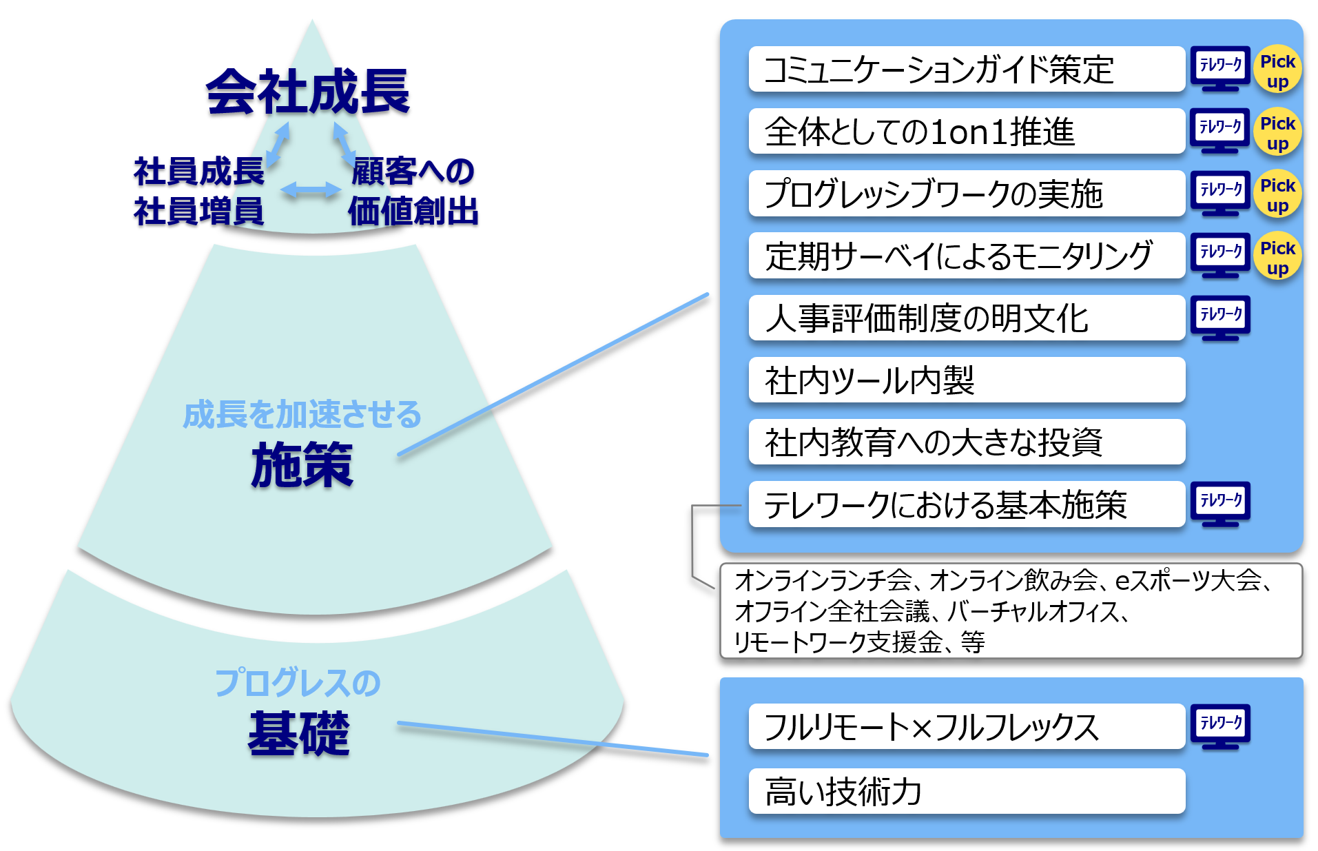 プログレスでは働き方や高い技術力を基礎にしながら成長を加速させる様々な施策を講じています。