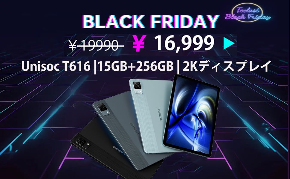 2023年史上最安值16999円! ブラックフライデー数量限定タイムセール。15GB+128GBの2Kディスプレイ タブレット!
