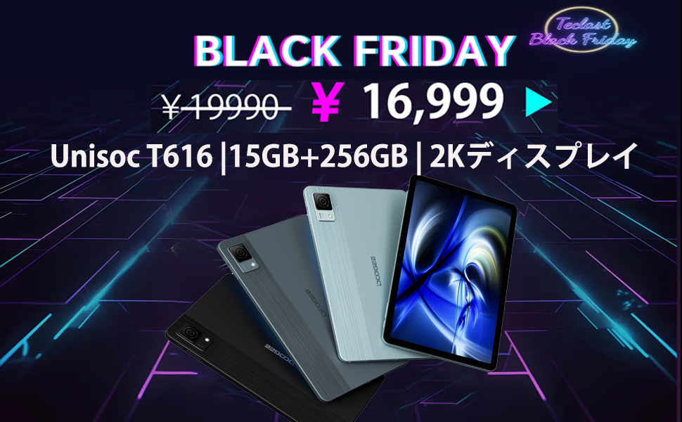 DOOGEE T20S人気タブレットがAmazonブラックフライデー限定価格で登場、15GB+128GB、UNISCOT T616 8コプロセッサ、2Kディスプレイ構成で限定16999円!