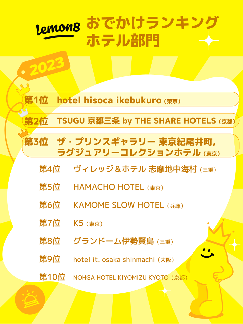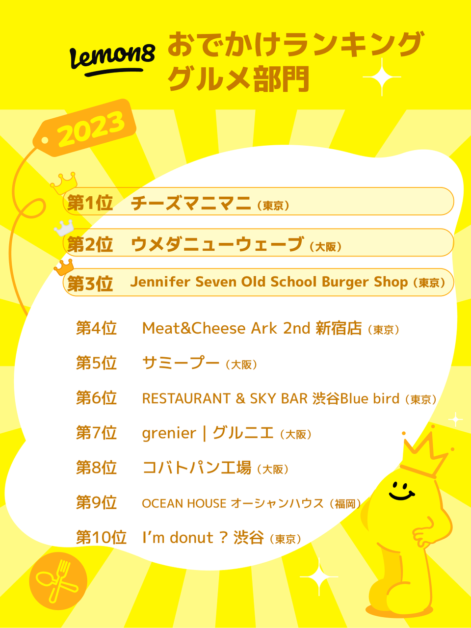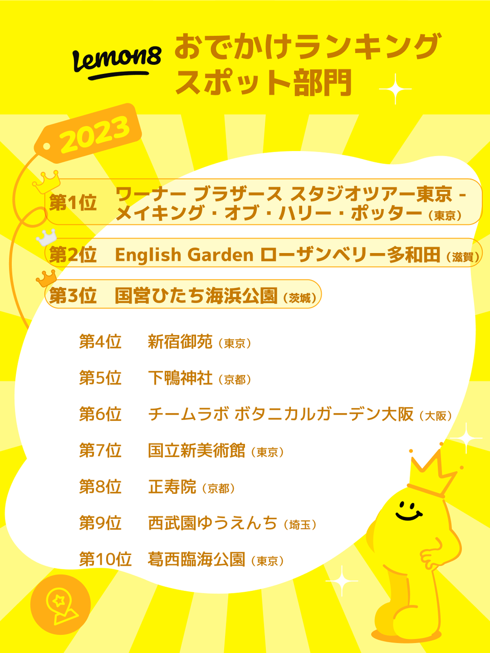 Lemon8おでかけランキング2023ページURL:https://v.lemon8-app.com/magic/eco/runtime/release/65645065e92695029dacd3d7?appType=lemonade&magic_page_no=1