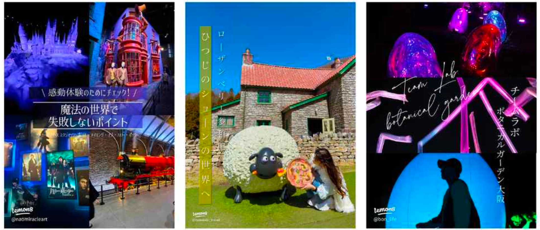 2023年6月にオープンした「ワーナー ブラザース スタジオツアー東京 – メイキング・オブ・ハリー・ポッター」が堂々の第1位を受賞!Lemon8では、「写真では伝えきれないほどのクオリティに感動!」「予想以上に見どころが多い!」というユーザーのコメントが多く、館内での時間配分、ユニークな撮影方法やグルメ情報なども人気に。第2位は、滋賀県米原市に位置する英国式庭園「English Garden ローザンベリー多和田」。園内の「ひつじのショーン ファームガーデン」では、ストーリーに登場する家を再現した施設内で、世界観を体験できます。「季節のお花や緑に癒される!」「パン作り体験も楽しかった!」など休日のデートでアクティビティを楽しむ声も寄せられています。そのほかにも「チームラボ ボタニカルガーデン 大阪」などがランクイン。「映え」と「体験」の両方を楽しみたいLemon8ユーザーにとって、日常を離れて「別世界に没頭できるスポット」がトレンドです。