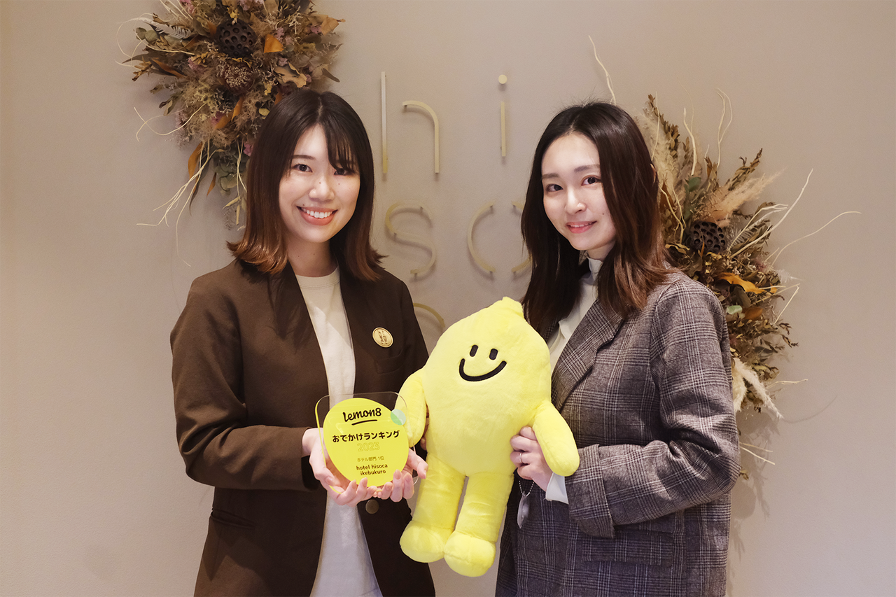 「ホテル部門の第1位に選出していただき、ありがとうございます!感度の高いユーザーが多いLemon8での受賞に、キャスト一同とても喜んでおります!全室サウナ付きホテルとして注目していただいておりますが、くすみカラーのかわいいデザインや、五感で癒されるこだわりの備品、アイテムも多数ご用意しております。思わず「かわいい!」と叫びたくなる様な映えスポットも沢山ありますので、ぜひご家族やお友達と一緒に“hisoca”をご体感ください。」