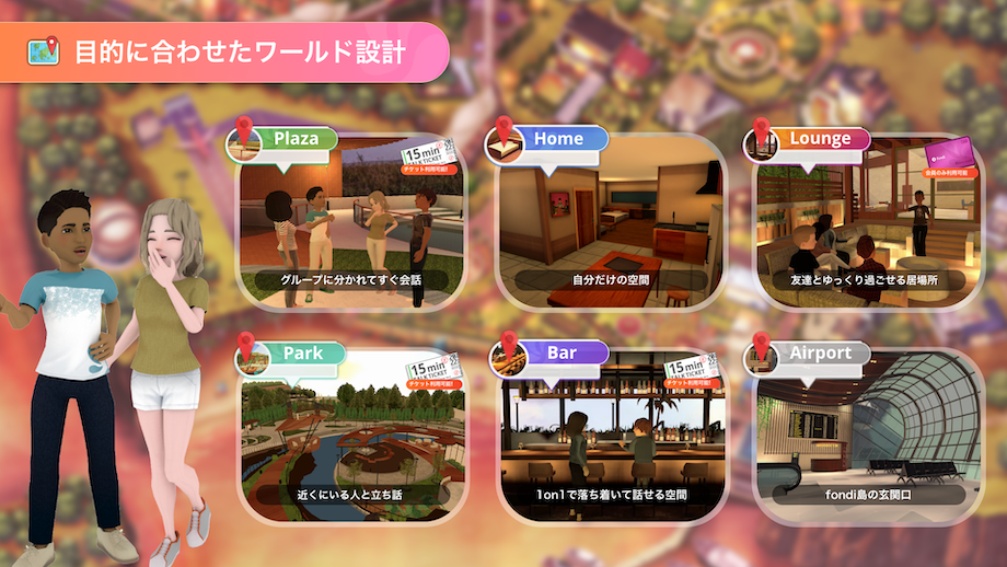 fondiは、「カタコト英語から始まる、バーチャル海外生活」をコンセプトに、世界中の英語学習者と一緒に、実践的な英会話を楽しめるメタバース空間を提供しています。