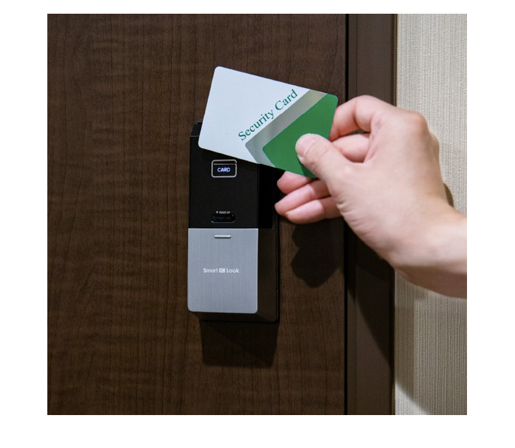 ユーザー登録にICカード+暗証番号で解錠する設定が可能となり、より高いセキュリティを実現。室内側にOPマルチリーダーを設置すれば入室に加え、退室履歴管理もできるようになります。また、独自のAIプログラムにより、ネットワーク構築しなくても様々なパスワードを遠隔で発行できます。