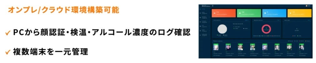 アルコール検知×検温×顔認証の採用により、なりすまし防止に大きな効果があります。