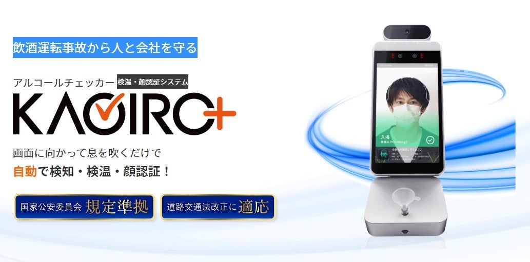 当社「KAOIRO+」は、顔認証により運転者を特定し、同時にアルコールチェックをおこなうため、面倒な紐づけ作業が不要となり、チェックデータが製品内に保管されることで事業者の負担を軽減致します。さらに顔認証時に検温もおこなうので体調把握が可能になるなど労務管理の新しいツールとして活用ができます。