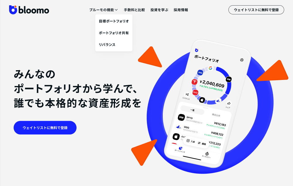 「Bloomo」は、米国株・ETFにスマホから投資できる長期資産形成のための証券サービスで、初心者から経験者まで安心・簡単に資産形成できる機能をご用意します。