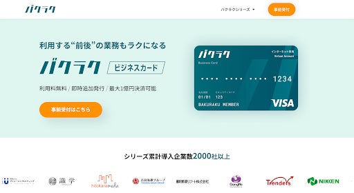 利用料無料/即日追加発行/最大1億円決済可能。内部統制や証憑管理も効率化する機能などを提供することで、カードを利用する従業員も、カードを管理する経理担当者の業務もラクになる次世代の支払い体験を実現する、次世代の法人カードです。
