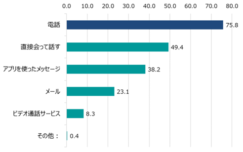 また、その際の連絡手段は「電話」(75.8%)が1位で、便利で手軽なコミュニケーション手段として、今も大半の親子間で利用されていることがうかがえます。【図2】