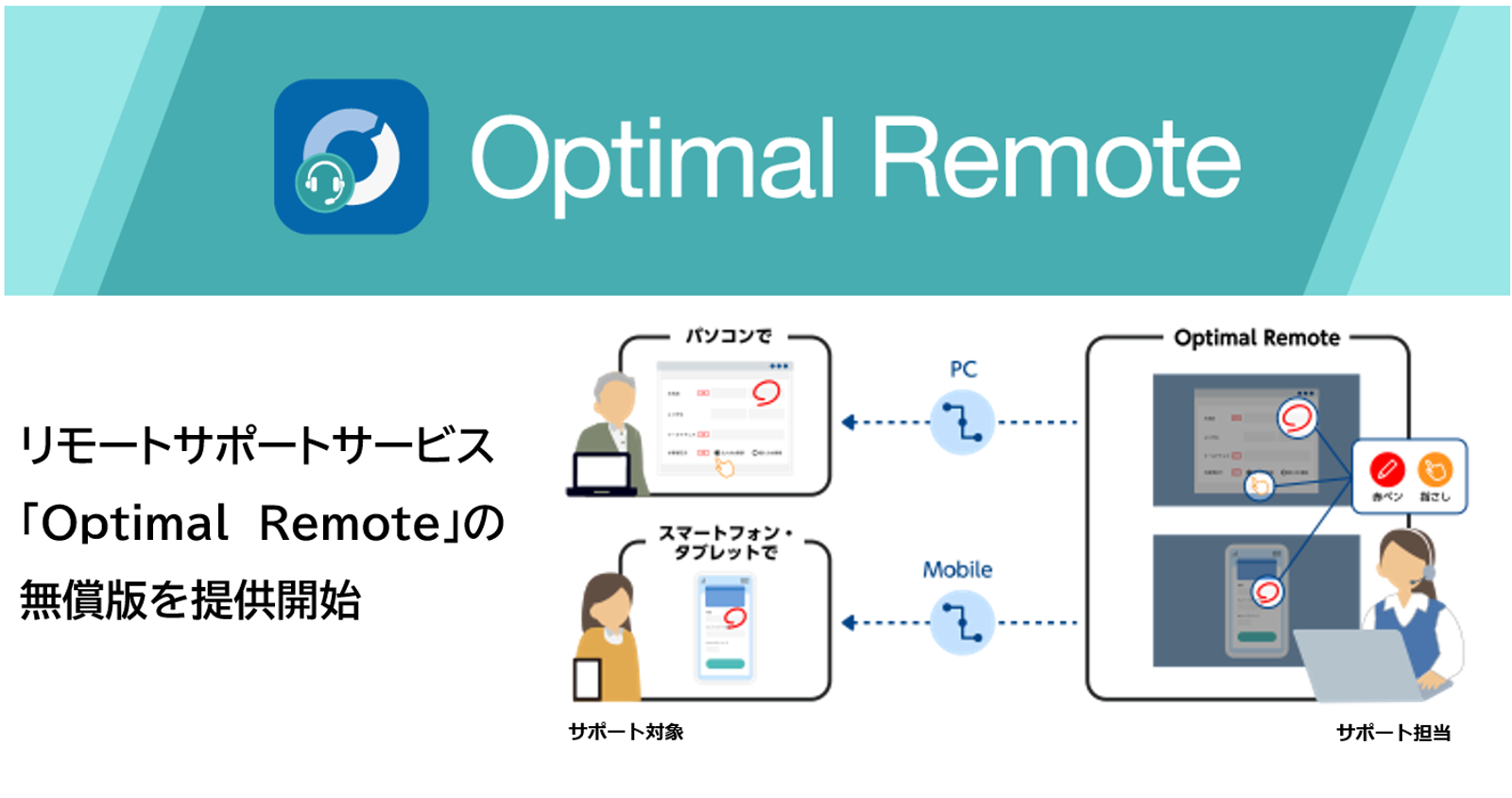 「Optimal Remote」はサポート対象の画面をリアルタイムに共有し、速やかなトラブル対応と操作説明のサポートを行うサービスです。PCやモバイル端末に対応し、サポート時間の短縮による満足度の向上を実現します。