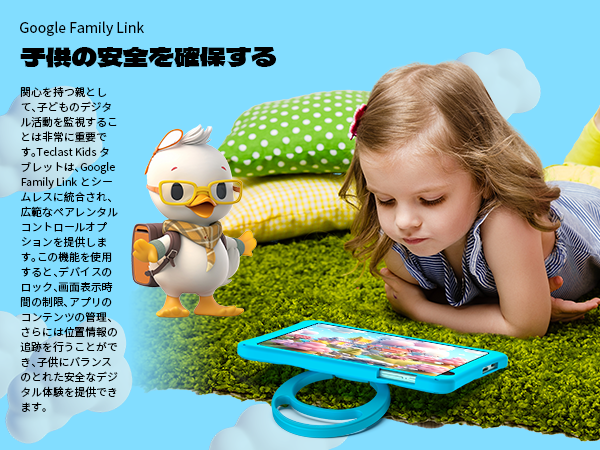 関心を持つ親として、子どものデジタル活動を監視することは非常に重要です。Teclast Kidsタブレットは、Google Family Linkとシームレスに統合され、広範なペアレンタルコントロールオプションを提供します。この機能を使用すると、デバイスのロック、画面表示時間の制限、アプリのコンテンツの管理、さらには位置情報の追跡を行うことができ、子供にバランスのとれた安全なデジタル体験を提供できます。