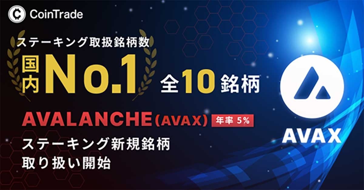 これにより「CoinTradeStake」では全10種類の暗号資産の取扱いが可能となり、国内暗号資産交換業者において取扱い通貨数最多のステーキングサービスとなります。