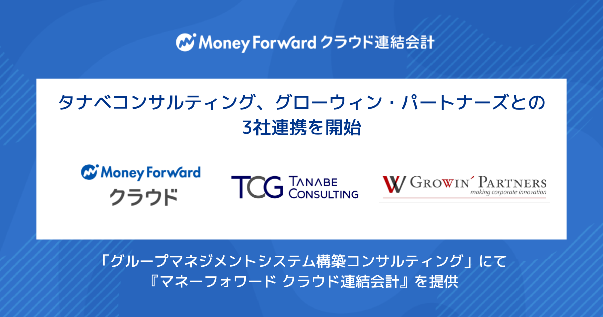 この度、当社とタナベコンサルティング、グローウィン・パートナーズで3社連携を行うことで、「グループマネジメントシステム構築コンサルティング」を通じて、『マネーフォワード クラウド連結会計』を提供します。これにより、グループ経営管理におけるソリューションを拡充し、連結管理会計や業績マネジメントをデジタルで実装するサポート体制を実現します。