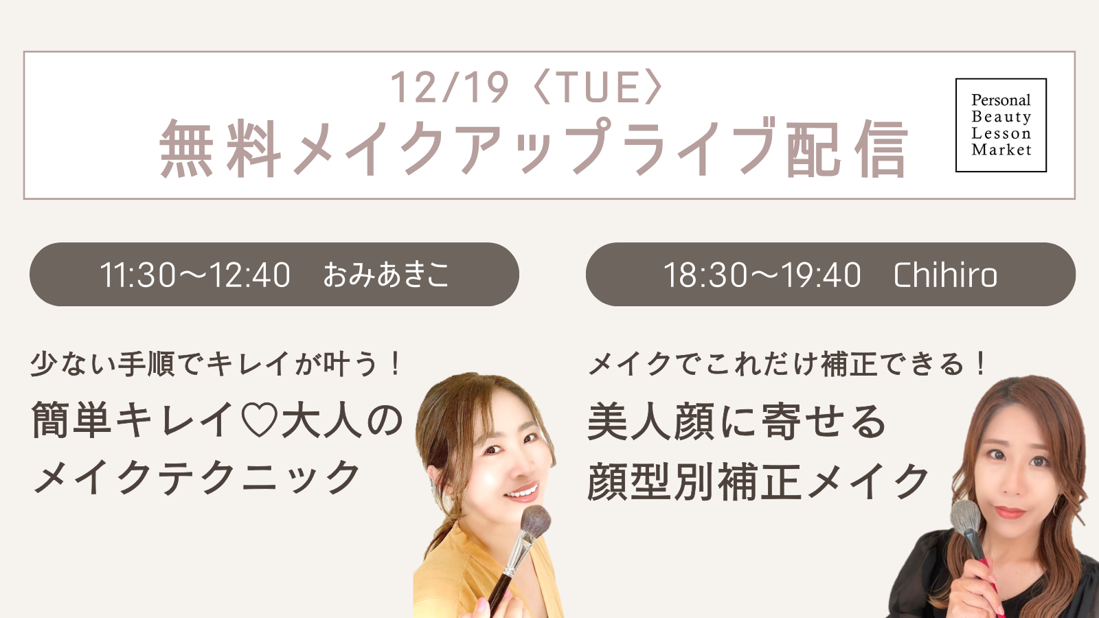 第1回 「少ない手順でキレイが叶う!簡単キレイ♡大人のメイクテクニック」 2023年12月19日(火)11:30~12:40
