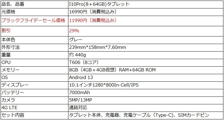 ブラック フライデー期間に、弊社の製品はより多くのお客様に気に入っていただき、特に弊社のI10Pro(8+64GB)タブレットはお客様に大変ご好評をいただいております。明日はブラック フライデーの最後の日ですから、気になるタブレットがあったら、ぜひ見逃さないでください。