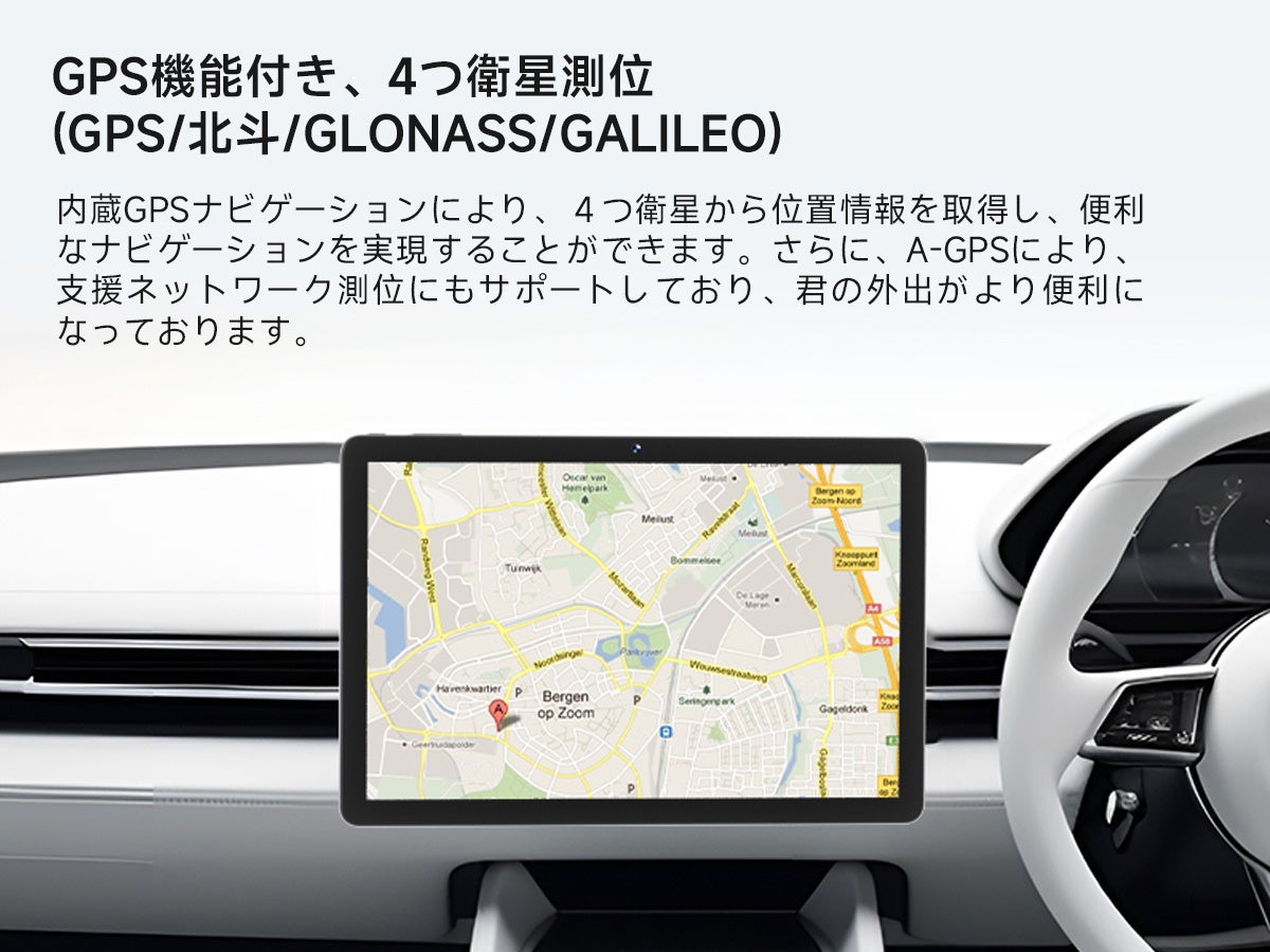 タブレットはGPS機能を搭載して、オフラインマップをダウンロードすると、内蔵GPSセンサーによりGoogle マップを利用できます。GPS,北斗,GLONASS,GALILEO四つの衛星ナビゲーション システムをサポートし、A-GPS支援ネットワークポジショニングをサポートしており、君の外出が楽になっております。